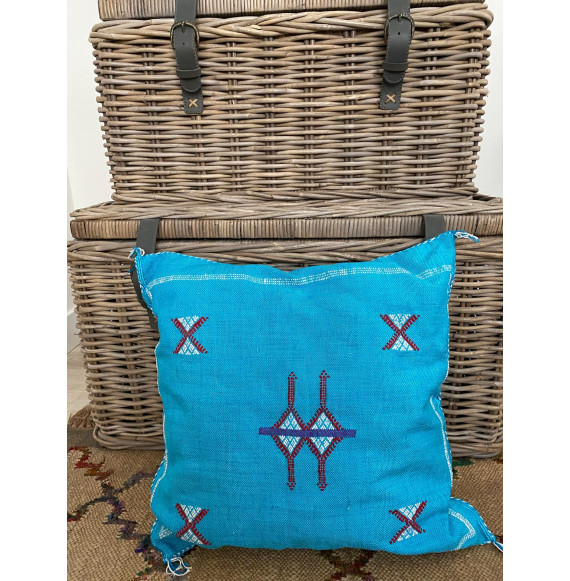 Cojín artesanal de seda de cactus elaborado en Marruecos de forma artesanal. Cada cojín es único y pueden variar los colores de los hilos con los que se bordan. Relleno incluido.
