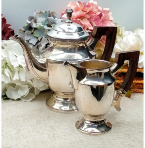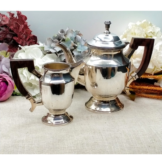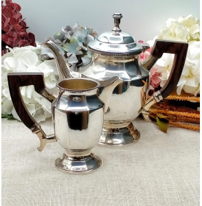 Juego de café de plata francesa y madera de palisandro. Piezas antiguas con peso y gran tamaño.