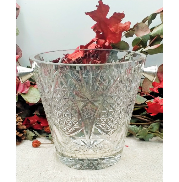 Hielera de cristal antiguo y asas de plata tambien nos encanta como florero