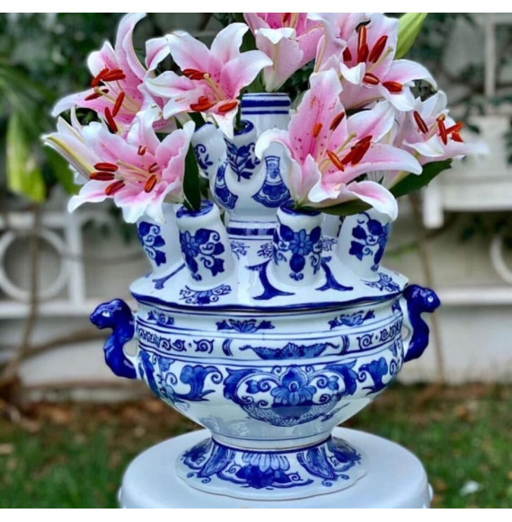 Tulipanero en porcelana azul