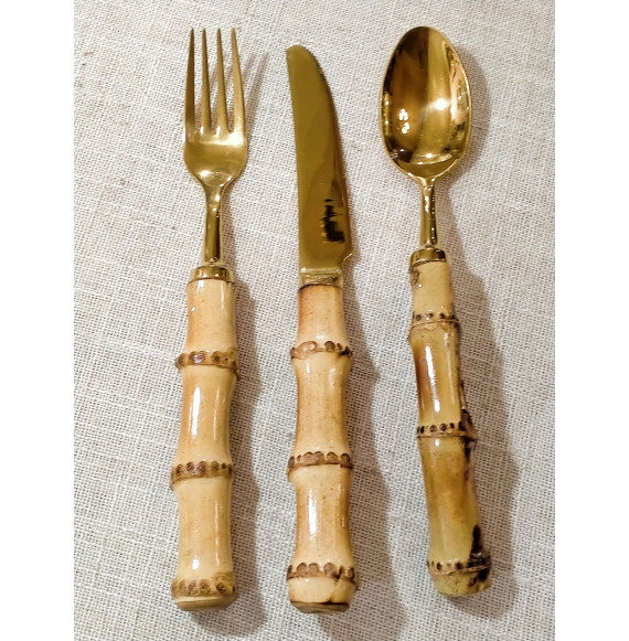 Cuberteria bambú formada por 6 tenedores 6 cuchillos y 6 cucharas de postre.