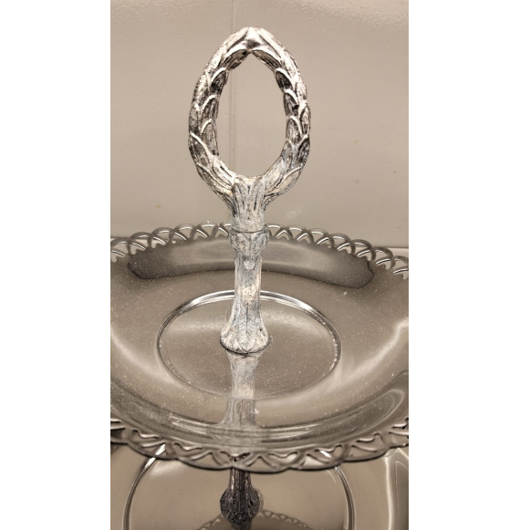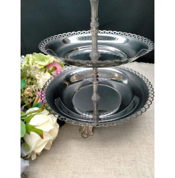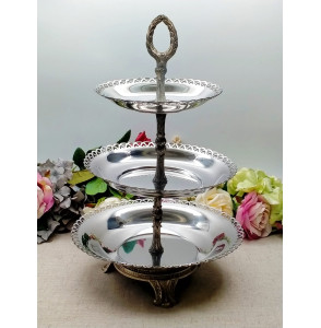Alto total 40cm,alto al primer plato 8cm. Medida Platos 27cm 23cm y 18cm