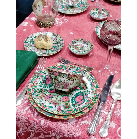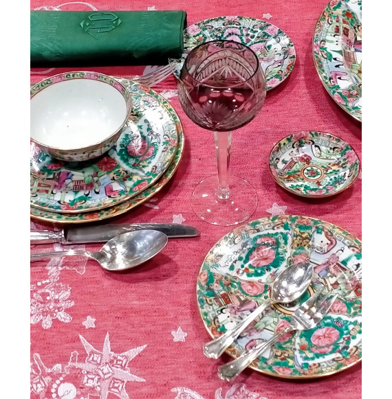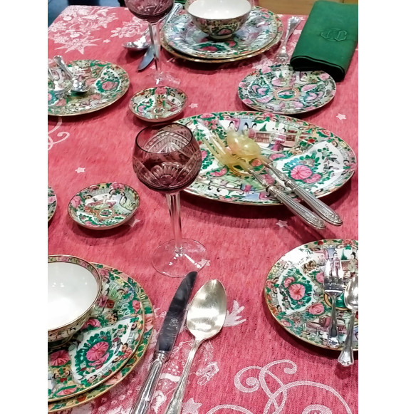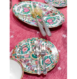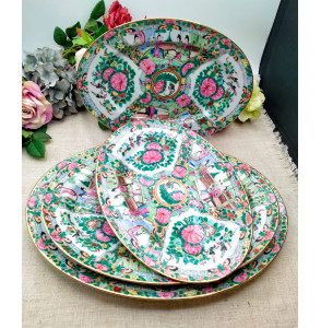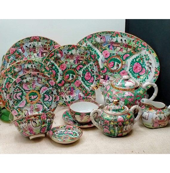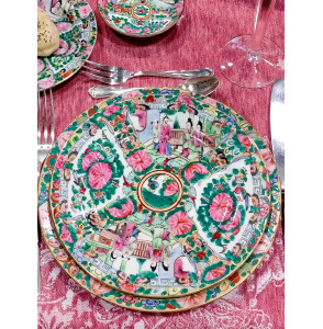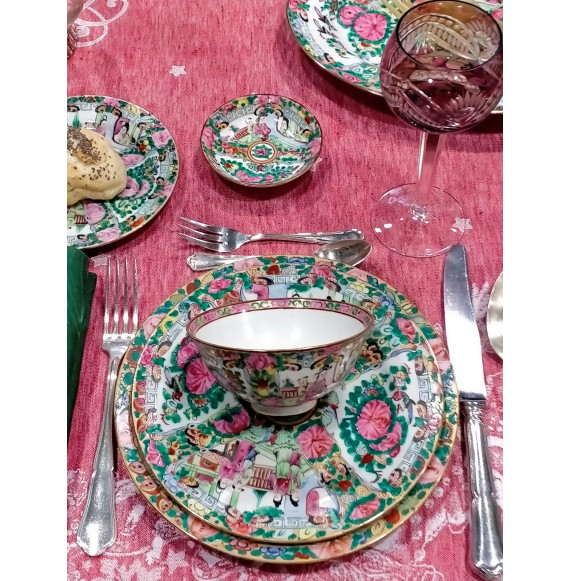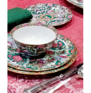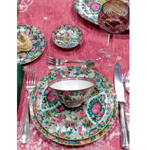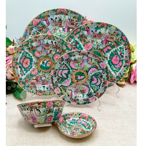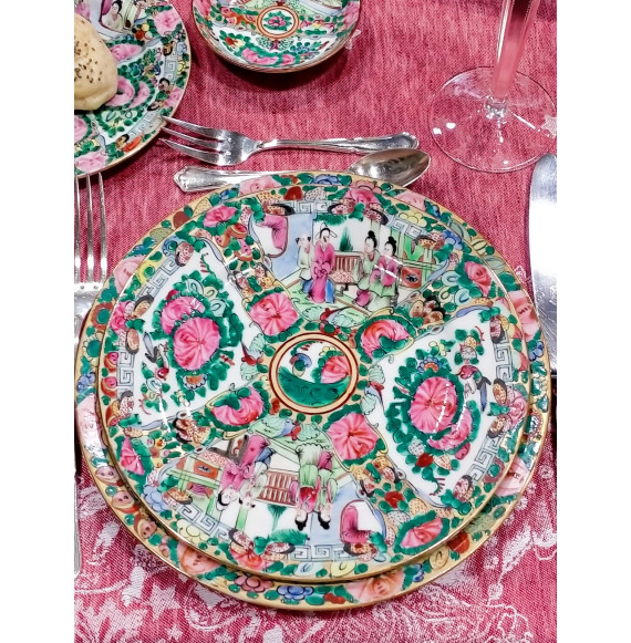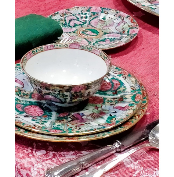 Vajilla medallón rosa de porcelana macao de finales del siglo XIV principios del siglo XX, Producida en Cantón Guangzhou