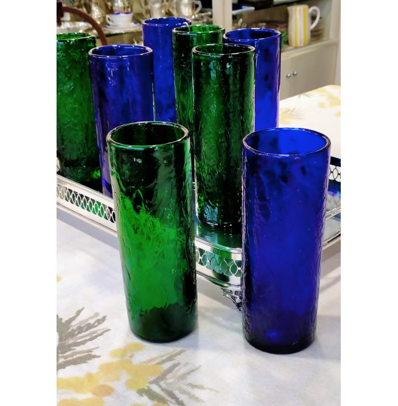 4 vasos azules y 4 vasos verdes