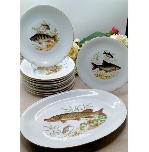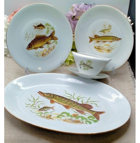 Set de 12 platos de 24,5cm, fuente de 42x30cm y salsera