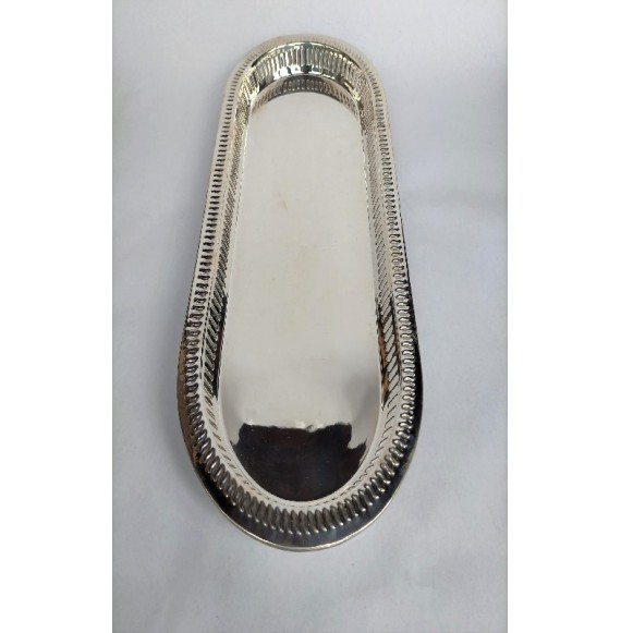 Bandeja antigua de alpaca ovalada de 46,5 x 20,5 cm.