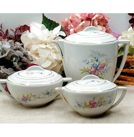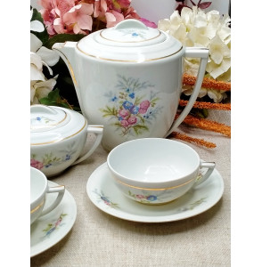 Juego de té de porcelana francesa blanca con motivos florcitas